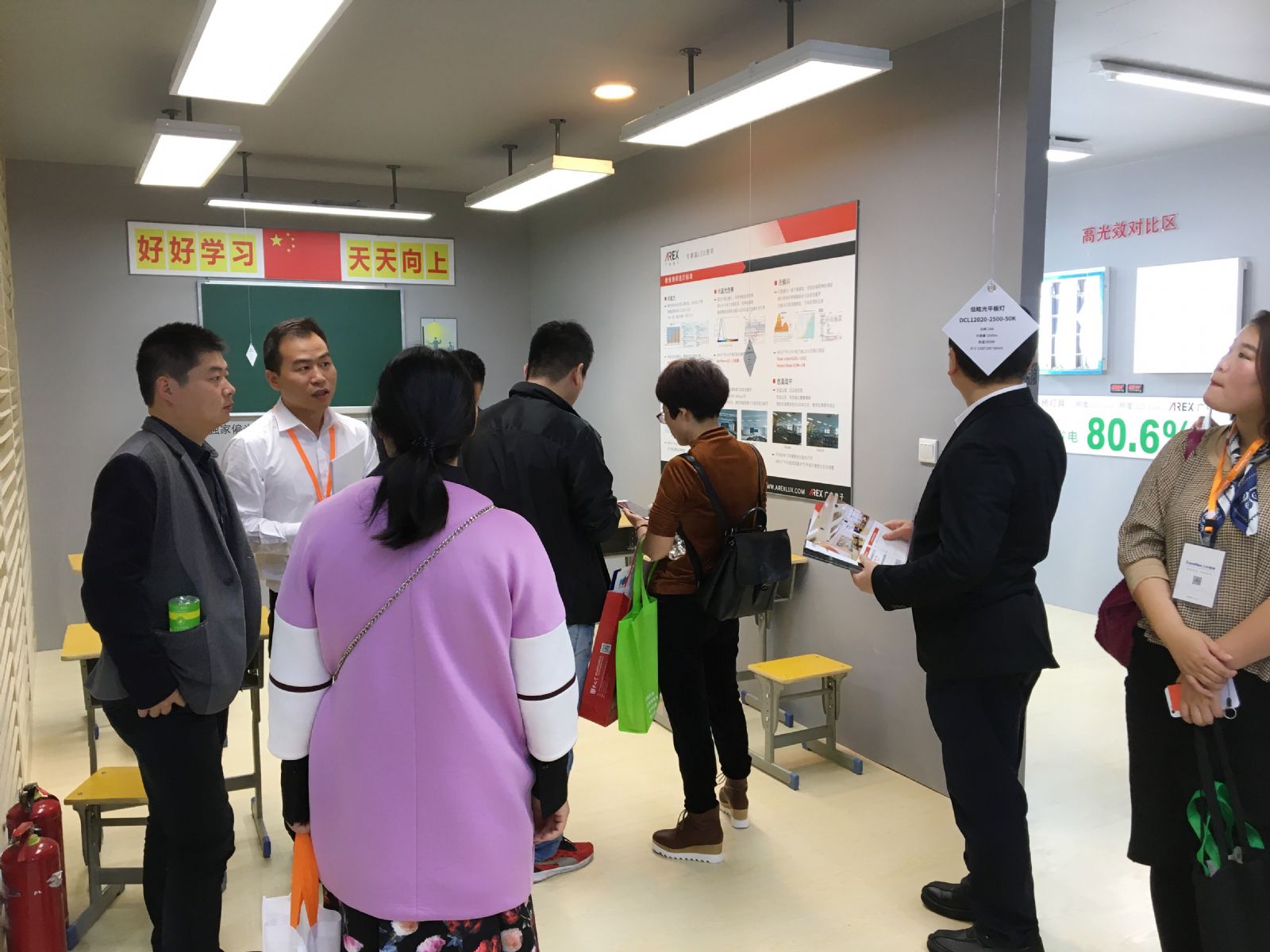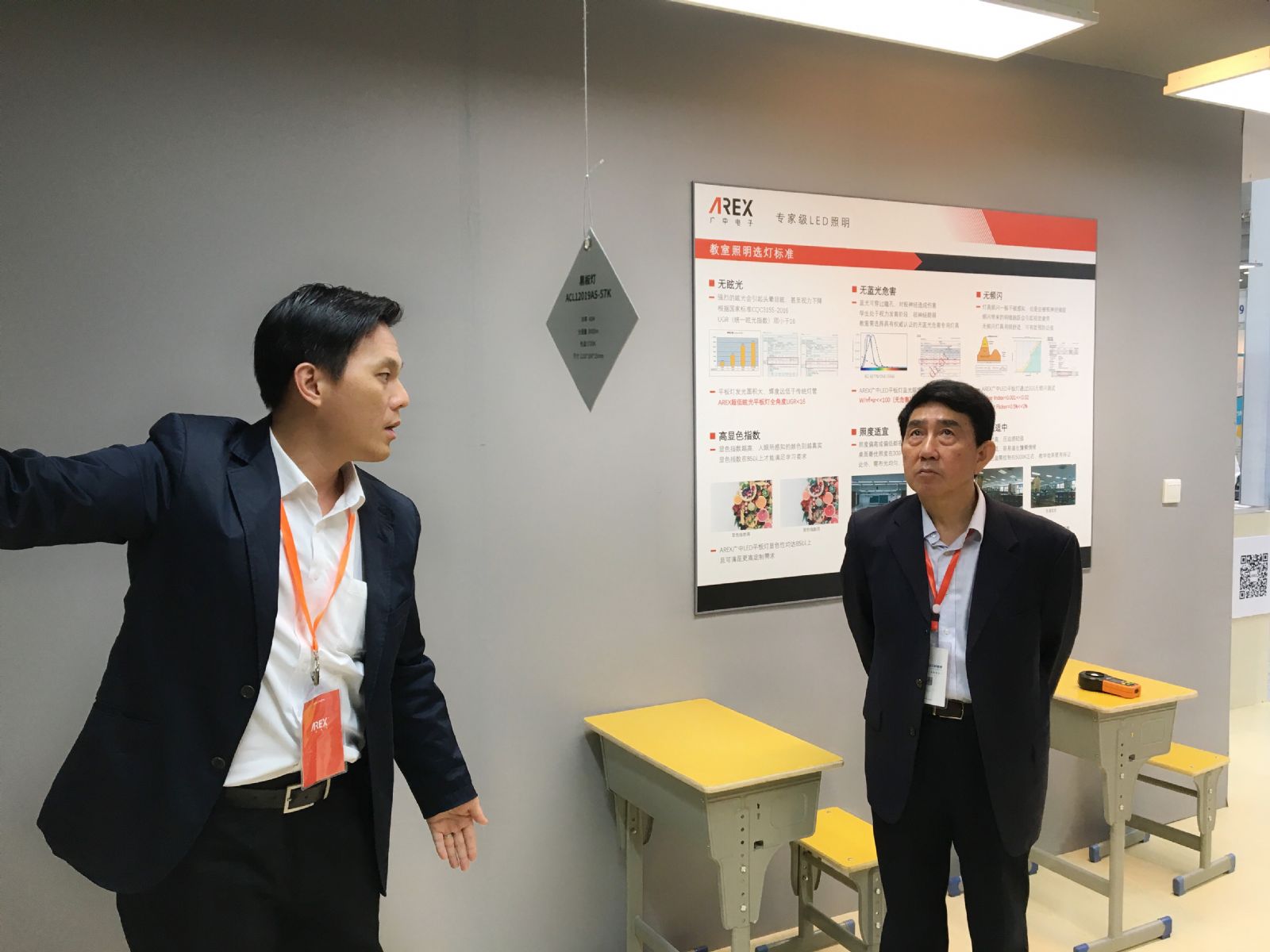 近年來,AREX陸續推出專利偏光黑板燈、超低眩光指數平板燈等專用於學校教室燈具。率先提出無眩光、無頻閃、無藍光危害的健康照明理念,並深入探索學校照明需求,確立照度規範、適宜色溫及最低顯色要求等。