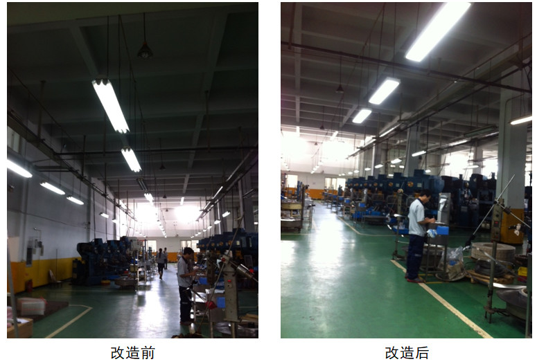 2014年上半年,AREX新品在上海钜祥得以試用。在普通衝壓車間,以DCL12020-3000(35W)取代1.2mT8*2(80W)螢光燈盤,總功耗由原來的640W降至385W,地面照度卻由75lux提升至233lux,節能效果顯而易見。但由於產品新穎,上海钜祥本著嚴謹審慎的工作態度,對AREX照明產品開始了長達半年的試用評估。記錄顯示,半年裡,所安裝樣燈無一故障,且光衰低於2%。