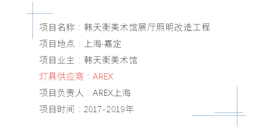 美術館館藏著名藝術大師韓天衡先生向嘉定區政府捐贈的1136件藝術珍品,2013年正式開館展出。2017年-2019年,美術館分三期對各展廳進行照明改造。AREX廣中全程參與,量身定制改造方案,用光向藝術致敬。