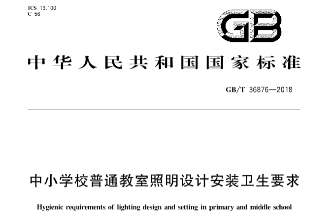 2018年9月17日,國家市場監督管理總局、國家標準化委員會批准發佈了《中小學校普通教室照明設計安裝衛生要求》GB/T 36876-2018(以下簡稱《標準》)。《標準》對中小學校普通教室桌面、黑板面照度和設計安裝衛生要求進行了詳細規定,對於保護青少年視力具有重要意義。該標準已於2019年4月1日正式開始實施。