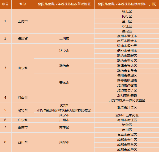 2019年1月,教育部辦公廳印發《關於公佈2018年全國兒童青少年近視防控試點縣(市、區)和改革試驗區遴選結果名單的通知》(以下簡稱《通知》),命名北京市東城區等84個地區為全國兒童青少年近視防控試點縣(市、區)、天津市北辰區等29個全國兒童青少年近視防控改革試驗區。《通知》再次明確要求:嚴格按照普通中小學校、中等職業學校建設標準,落實教室、宿舍、圖書館/閱覽室等採光和照明要求,使用利於視力健康的照明設備,落實學校照明照明衛生標準達成率100%。