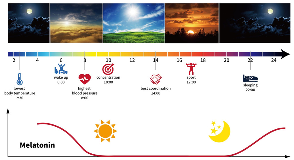 不止於此,患者幾乎一天24小時都要待在 ICU 內,這對於人類早已適應的日出而作、日落而息的作息方式來說,澈底擾亂了內在的生理機制。比如夜晚沒有光線的時候,人類分泌褪黑激素促進睡眠,而白天時,陽光中的藍光則抑制褪黑激素的分泌,使人興奮有活力。當然,ICU 因患者情況特殊,不可能完全做到正常的晝夜節律,但通過提供科學的照明環境,充分調動患者的生理機制,改善睡眠品質、緩和精神情緒,促進病人恢復,縮短療癒期,AREX 認為是可行的。