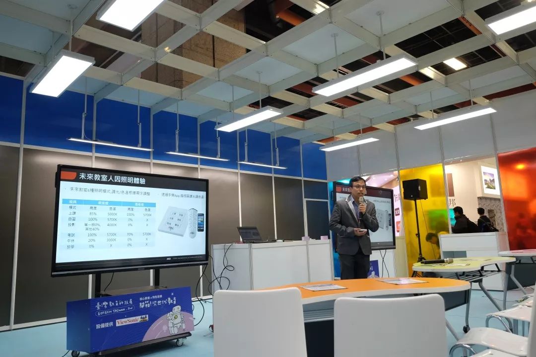 AREX研發總監林育生出席現場的「未來教室」課堂,進行「⼈因照明」的專題演講。在City News的現場訪問中,林育生詳細介紹現場展品及智慧調光系統:除了燈光亮度的調節,也能夠因應不同教學環境,如圖書館、美術、多媒體教室,營造出不同⾊溫,打造具有溫度的空間,並配合遠端遙控技術,⽅便教師一手掌握燈光的調控,打造兼具健康與智慧的照明系統。