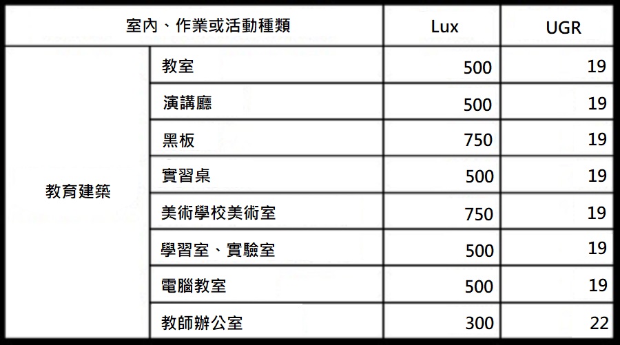 (2)黑板需採用偏光照明設備設置局部照明,其平均照度不得低於750 lux。